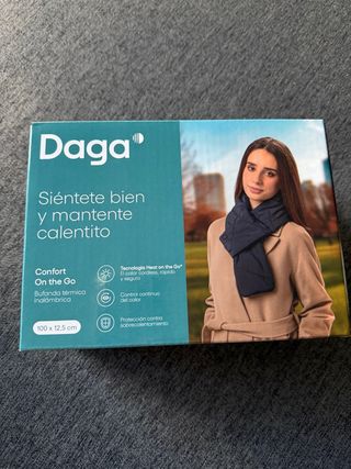 Bufanda térmica Daga, ideal para mantenerte caliente. Cuenta con tecnología Heat on the Go para un calor rápido y seguro. - Bufanda térmica inalámbrica. - Calor cordless, rápido y seguro. - Control continuo del calor. - Protección contra sobrecalentamiento.