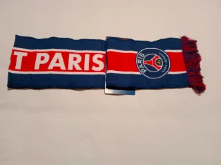 Bufanda oficial del Paris Saint-Germain, de lana, comprada en París. - Diseño con el logo del club. - Franjas rojas y azules. - Flecos en los extremos.