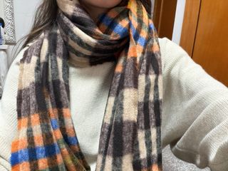 Holaa buenas😃vendo bufanda de la marca Tintoretto con un diseño de cuadros. - Diseño a cuadros en tonos azules y naranja. - Tacto suave y cálido.