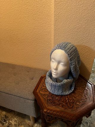 Cuello doble tejido a mano con hilo de calidad. - Diseño moderno y versátil. - Tonos azules y blancos