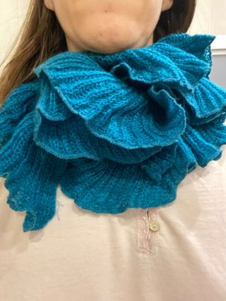 Bufanda de cuello con un diseño texturizado y volantes hecha por mí. 100x14