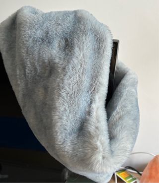 Este cuello de pelo de Parfois es suave y cálido. Su diseño combina tonos azules y grises para un look moderno. - Material: Pelo sintético. - Color: Azul cielo y gris.