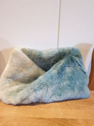 Cuello de pelo corte cruzado, en color degradado azul- grisáceo. Talla Única.