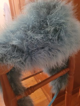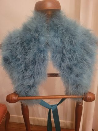 vendo estola de plumas azul de la marca Adolfo Dominguez. Usado solo una vez.