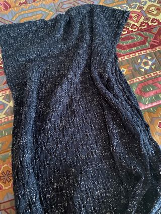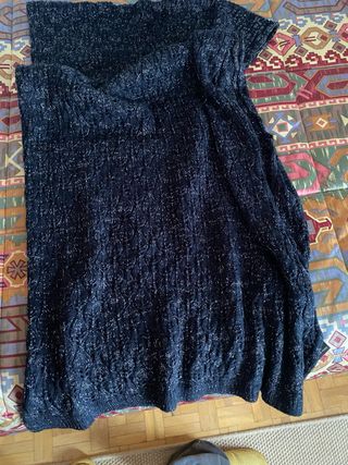 Bufanda azul con hilos metalicos. Composicion 100% acrilico. Se puede lavar