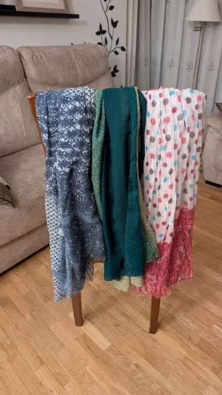 Rojo 110 x 110 cm seda satinada 8€ Verde 87 x 87 cm satinado 5€ Azul 75 x 75 cm gasa 5€ Descuento si adquiere varios