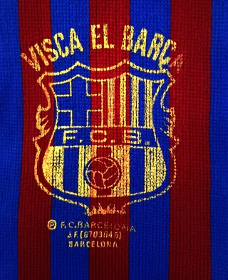 Bufanda de la Peña barcelonista del fútbol club Barcelona De Santiago, España. Se vende tal cual aparece en las fotos.