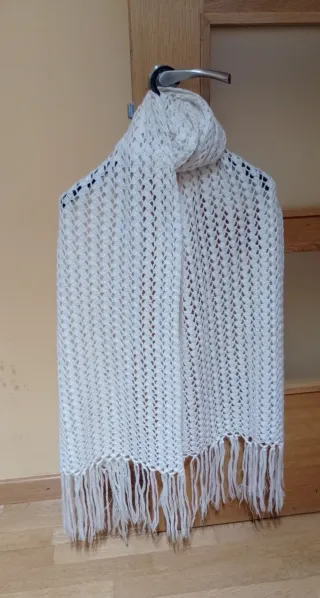 recién hecho a mano a ganchillo crochet ideal para poner en el cuello o por la espalda aproximadamente 210 cm de largo por 70 cm de pico ideal