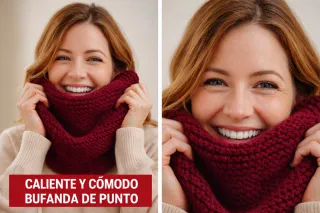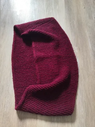 Bufanda de punto con un diseño tejido. - Material suave y cálido. - Color rojo y beige.