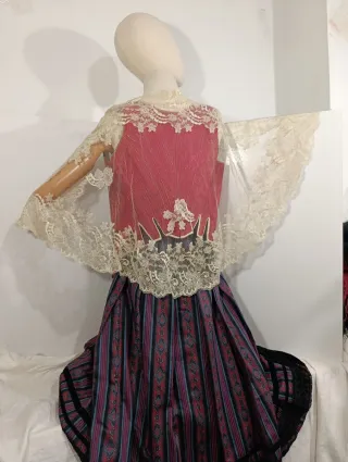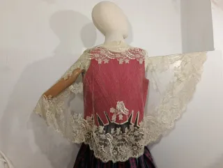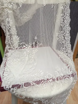 Elegante mantilla de encaje para fallera infantil. Un accesorio tradicional y delicado. medidas:144 largo 60 ancho - Diseño intrincado de encaje. - Bordes festoneados.