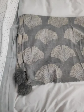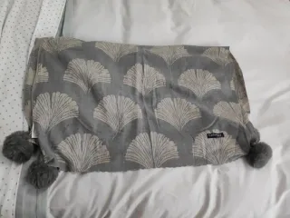 Bufanda suave con un bonito estampado de hojas con pompones. - Dos pompones decorativos en cada extremo - Tacto agradable - Nueva a estrenar - 50% algodon 50% viscosa