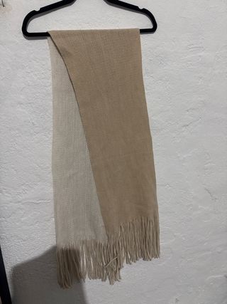Preciosa bufanda de color beige y blanco. Es suave y acogedora, perfecta para el invierno. - Tejido de punto con textura afelpada. - Diseño bicolor. - Flecos en el bajo.