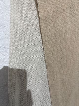 Se venden juntas dos bufandas de punto con flecos. - Un lado en color beige. - Otro lado en color blanco.