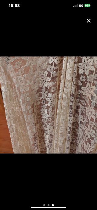 Preciosa mantilla de encaje color beige. Ideal para ocasiones especiales. - Encaje delicado y elegante. - Diseño floral. - Borde festoneado.