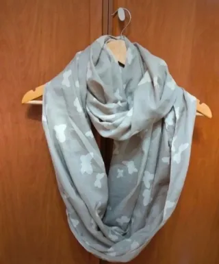 Pañuelo en forma circular, de cuello, color beige con estampado de mariposas. Medidas: 175 x 210 cm. En perfecto estado. Muy poco uso. Hago envíos. En persona se entrega en la puerta del Domino's pizza de Avda Puente del Pilar.