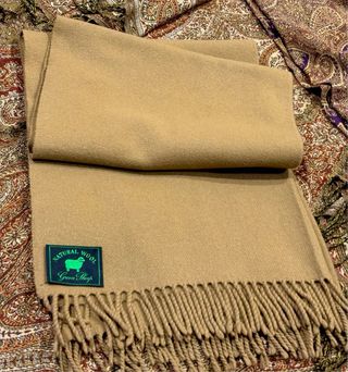 Bufanda grande de lana natural, con un diseño elegante y suave al tacto. Perfecta para complementar tu estilo. - Medidas: 160x60 cm. - Material: Lana natural. - Marca: Green Sheep. SIN ESTRENAR