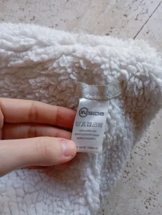 Conjunto de gorro y bufanda en tonos claros. - Gorro con pompón y diseño trenzado. Usado una vez. - Bufanda color crema, tipo cuello tubo, acanalado, con forro interior blanco y muy suave. Nuevo, con la etiqueta. De Inside.