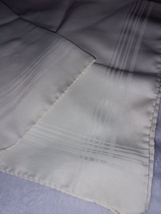 Pañuelo o fular con un diseño de rayas en tonos grises y blancos. Ideal para complementar tu atuendo. Marca: tienda local. - Diseño a rayas. - Flecos en los extremos.