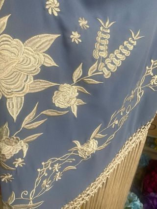 Mantón de Manila bordado azul y blanco