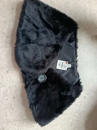 Elegante chal de pelo sintético, perfecto para complementar tu atuendo. - Tacto suave y cálido. - Diseño envolvente.