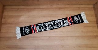 Bufanda del equipo de fútbol Rosenborg. - Diseño con el lema The Pride of Norway, Rosenborg, You'll Never Walk Alone. - Incorpora el escudo del club y la bandera de Noruega. - Flecos blancos en los extremos.