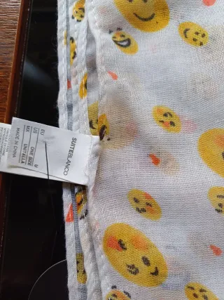 Pañuelo con un divertido estampado de emoticonos y corazones. Sus dimensiones son 166x51 cm. - Diseño alegre y colorido. - Tejido ligero y suave.