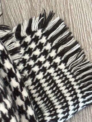 Bufanda maxi con estampado de pata de gallo. Poco uso. - Diseño clásico en blanco y negro. - Acabado con flecos en los extremos.