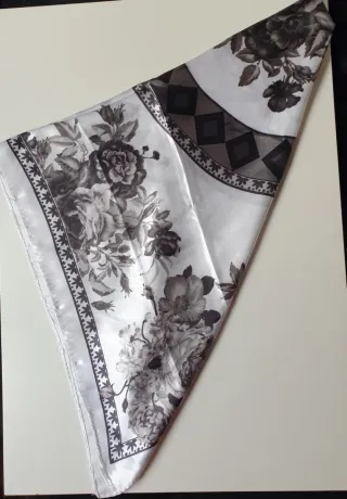 Elegante pañuelo con un estampado floral en blanco y negro. Su diseño aporta un toque sofisticado a cualquier atuendo. Nuevo. Medidas 87 x 90 cms *Cambio mucho los anuncios, si te gusta algo cómpralo ó resérvalo antes de que lo quite! ;) *No regateos. *VISITA mi perfil,tengo muchas cositas y PUEDES CREAR UN LOTE de envio para pagar un solo coste. *Envio por wallapop o entrego en mano en Zaragoza.