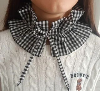 Cuello de tela con estampado Vichy, ideal para dar un toque especial a tu outfit. Hecho a mano con cuidado. - Diseño a cuadros Vichy blanco y negro. - Cierre con lazada.