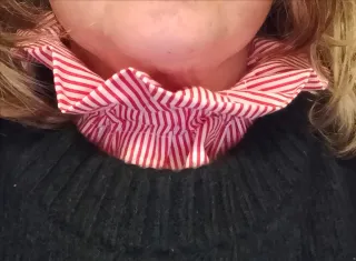 Cuello de tela a rayas rojas y blancas