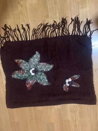 Bufanda de lana tejida con flecos. Está hecha a mano. Mide 2'60 cm contando los flecos.