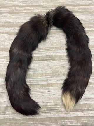 Elegante estola de piel, perfecta para añadir un toque sofisticado a cualquier atuendo. - Piel suave y abundante. - Diseño curvo que se adapta al cuello. - Punta de la cola con acabado en blanco.