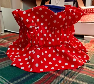 Cuello de tela con diseño de lunares. - Color rojo con lunares blancos. - Estilo fruncido.