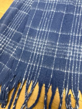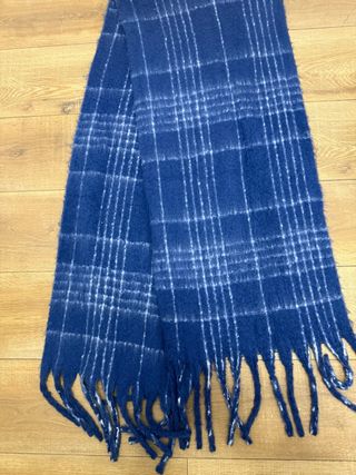 Preciosa bufanda de cuadros en tonos azules y blancos. Es suave y acogedora, perfecta para el otoño o invierno. Medidas aproximadas: 42 cm x 190 cm (sin contar los flecos). Sin estrenar (todavía lleva la etiqueta).