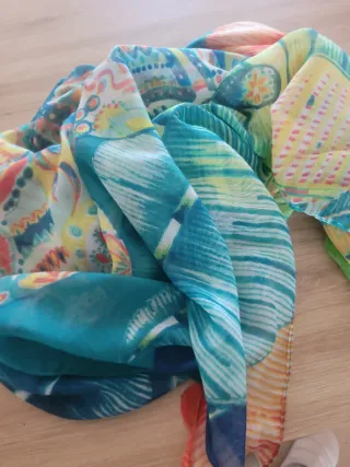 Precioso pañuelo bufanda Desigual de talla única. Es multicolor y tiene un diseño llamativo. - Está en perfecto estado, solo usada en un par de ocasiones - Confeccionada con una tela suave y ligera.