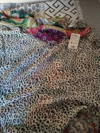 Preciosa estola de la marca Desigual, ideal para complementar cualquier atuendo. Es reversible y se encuentra sin estrenar. - Diseño vibrante y colorido. - Tacto suave y agradable.