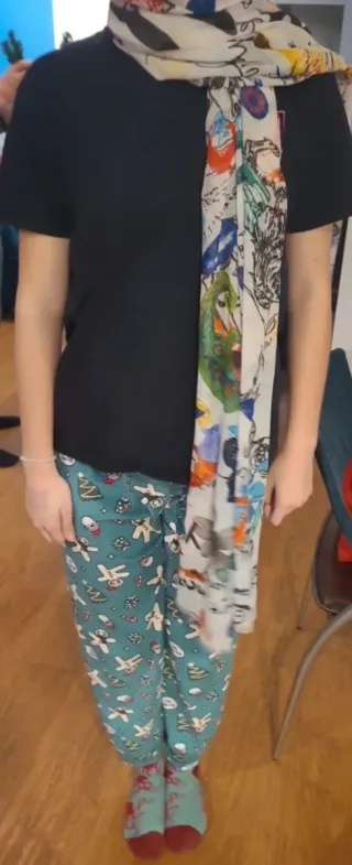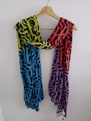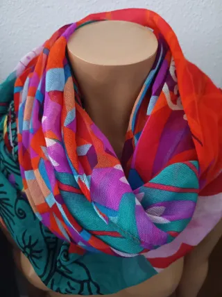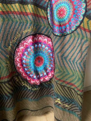 Bufanda de la marca Desigual con un diseño llamativo y colorido. En muy buen estado
