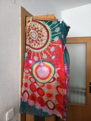 Vestido de la marca Desigual con un diseño moderno y llamativo. - Diseño con estampado geométrico degradado. - Cuello alto tipo bufanda. - Sin mangas.hago envió y lotes, no ofertas.