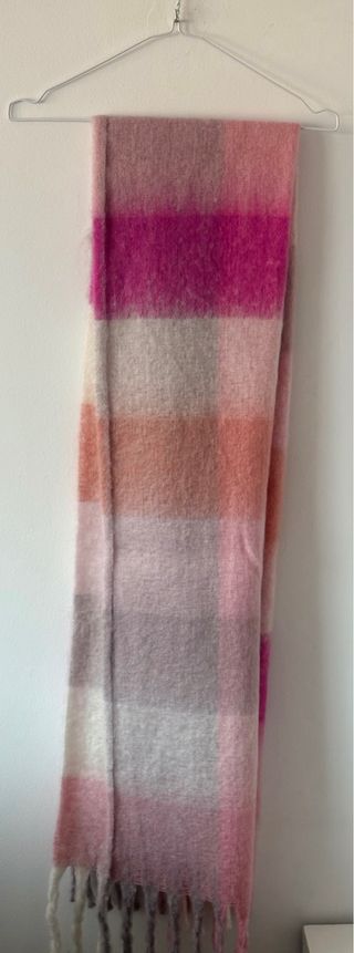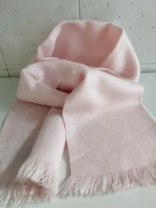 Bonita Bufanda muy suave y delicada en un tono rosa bebé. - Tejido cálido y agradable al tacto. - Acrílico 100%. - Diseño clásico con flecos en los extremos. - Tanto para infantil como para adulto. - Medidas: 140cm largo y 31cm ancho. - Fabricada en España.