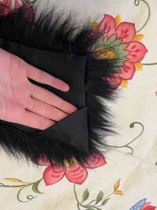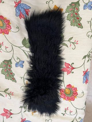 Cuello de pelo negro sintético para poner en camisas, jerseys, abrigos... Con forro interior y solapas y ojales para enganchar sobre la prenda. Medidas: 50 centímetros en la parte más larga, la de abajo, y 41 en la parte más corta, la parte de arriba. Muy cuidado. Usado muy pocas veces. Fabricado en España. Envío rápido. El mismo día de la compra o al siguiente.