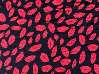 Pañuelo triangular con un divertido estampado de labios en contraste. - Diseño llamativo. - Tejido ligero y suave. Algodón. Con su forma triangular es perfecto para poner encima de jerseys, cazadoras o abrigos