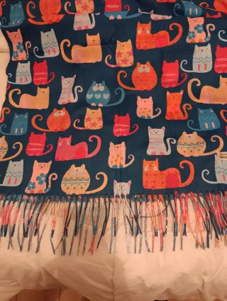 Preciosa pashmina con un divertido estampado de gatos en varios colores. Es suave y agradable al tacto. - Diseño de gatos. - Estampado multicolor. - Sin estrenar, perfecta para regalo.