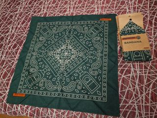 Pañuelo con diseño de la marca Jägermeister. - Color verde. - Estampado de botellas y motivos paisley.