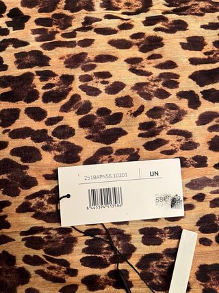 Bufanda suave con un llamativo estampado de leopardo. - Diseño de leopardo en tonos beige y marrón. - Acabado con flecos en los extremos. - Tiene alguna bola.
