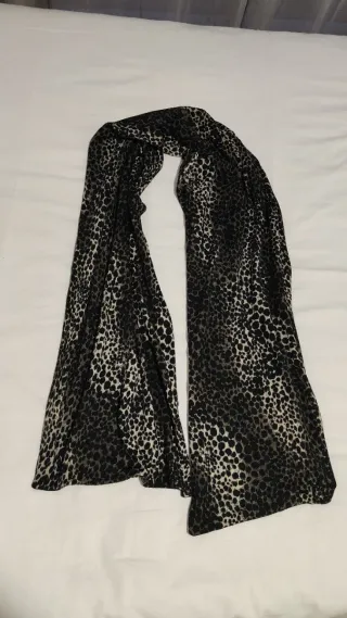 Preciosa bufanda de color beige y negro. Es suave y cómoda, perfecta para cualquier ocasión. - Diseño elegante con estampado. - Material ligero y cálido. - Ideal para usar en otoño o invierno.