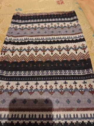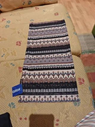 Braga de cuello con un diseño tejido y estampado de estilo nórdico. Es un accesorio versátil y cálido. - Diseño de rayas y motivos geométricos. - Tejido suave y confortable.