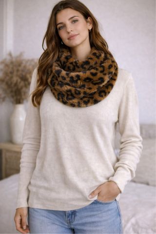 Cuello tipo bufanda con un llamativo estampado de leopardo. Suave y cálido, perfecto para complementar tu atuendo. - Diseño de leopardo. - Material suave y acogedor.