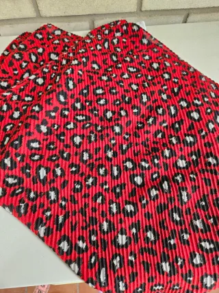 Pañuelo extra grande con estampado de leopardo. 90 cm de ancho y 2,30 de largo - Diseño llamativo en rojo y negro. - Tejido ligero y suave. - Medidas amplias para diversas formas de llevarlo.