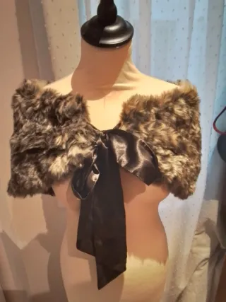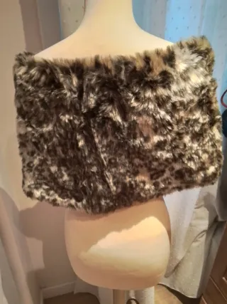 Elegante estola de piel sintética, perfecta para añadir un toque de glamour a cualquier atuendo. Estampado leopardo - Diseño con pelo sintético suave. - Cierre frontal con un lazo de satén marrón.