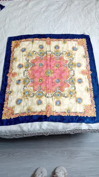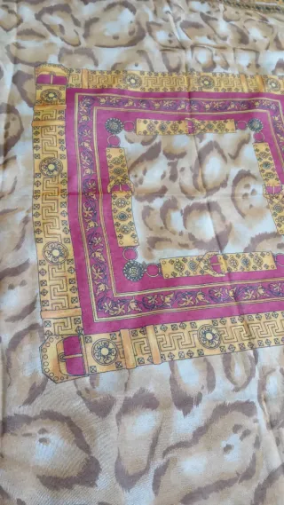 Pañuelo vintage con estampado barroco satinado que simula la seda. Con muchos detalles en el estampado. Está nuevo. #pañuelovintage #modavintage #pañuelobarroco